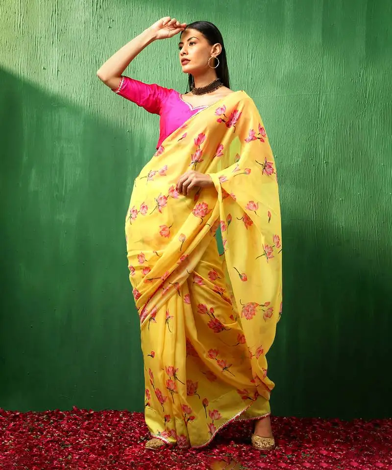 • Aishani collection hand embroidery kantha stitch handloom saree with bp (yellow)