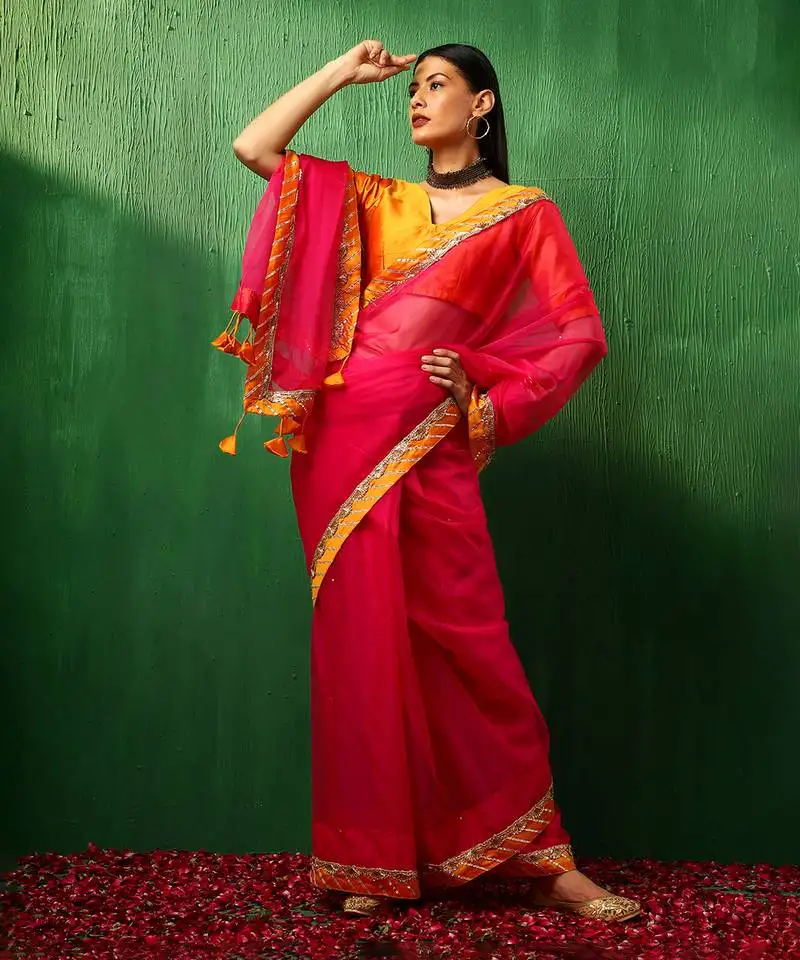 • Aishani collection embroidery hand spun cotton baluchari handloom saree with bp (dark pink)