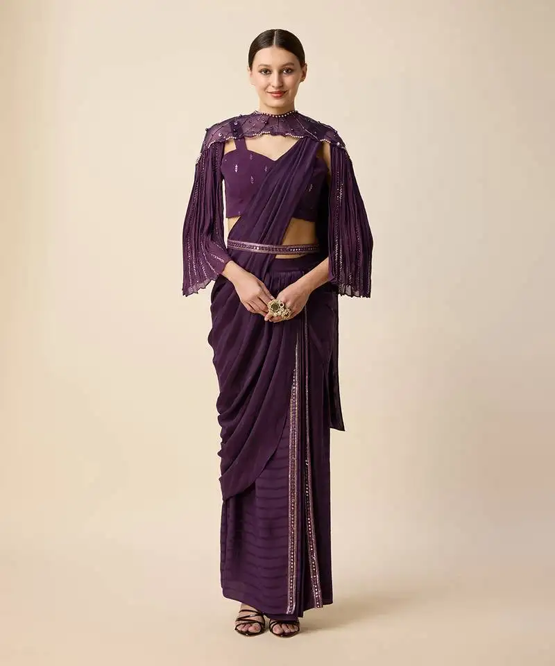 • wine shimmer chiffon c designer girlish heavy partywear saree
