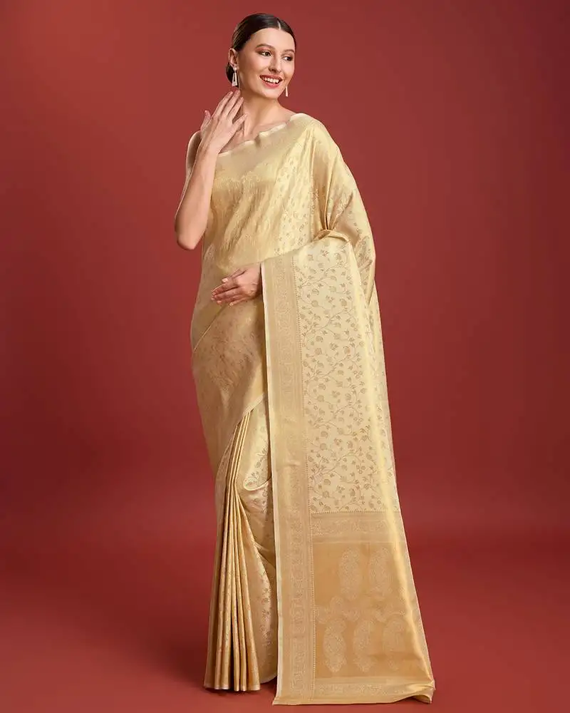 Women’s rama green zari resham embroidered vichitra silk party wear saree with blouse piece by manu fashion era