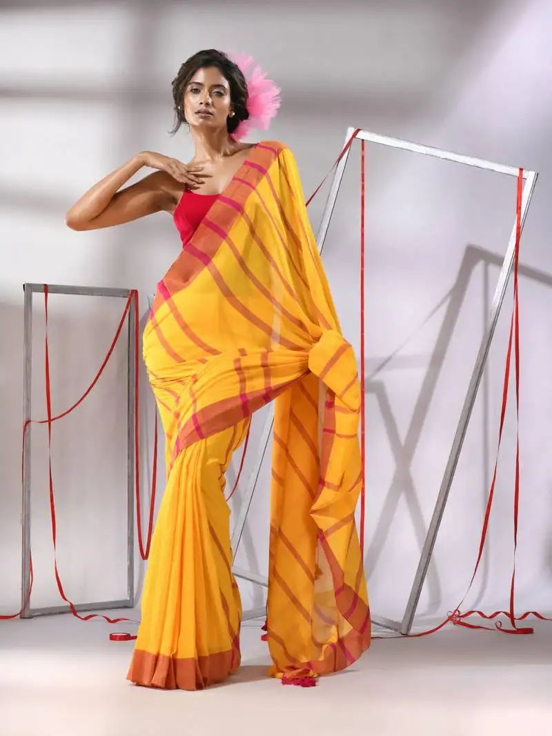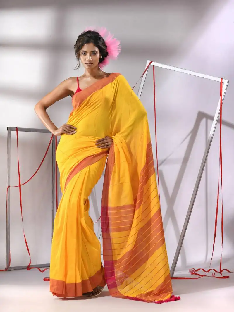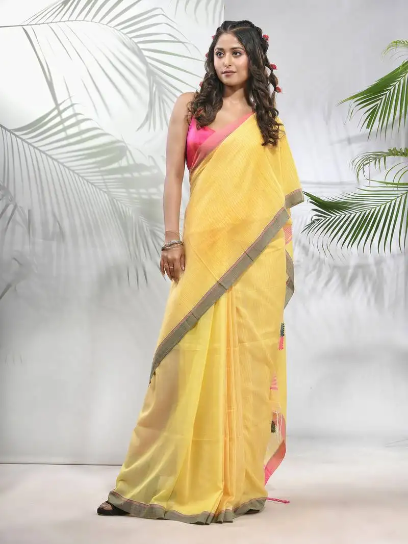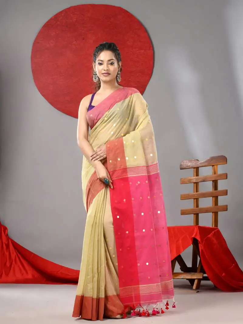 Sale!Yellow contrast 1000 butti zari woven paithani silk blend saree
