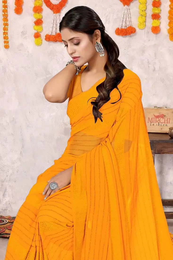 Yellow georgette solid:: tassels golden zari woven border saree with unstitched blouse piece