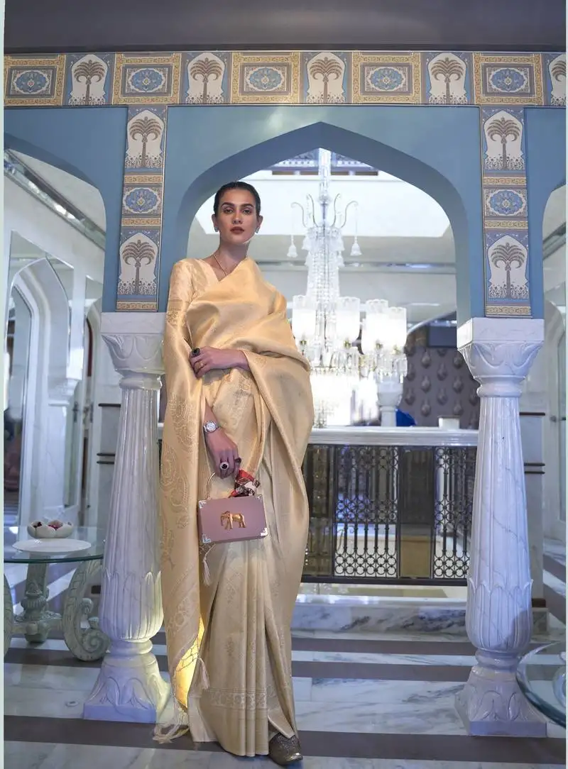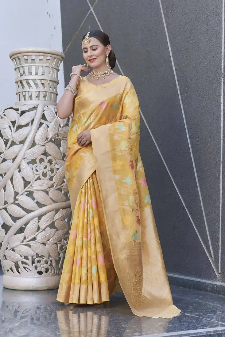 Sale!Yellow kanjivaram silk blendgold zari weaving border and rich saree with blouse for women
