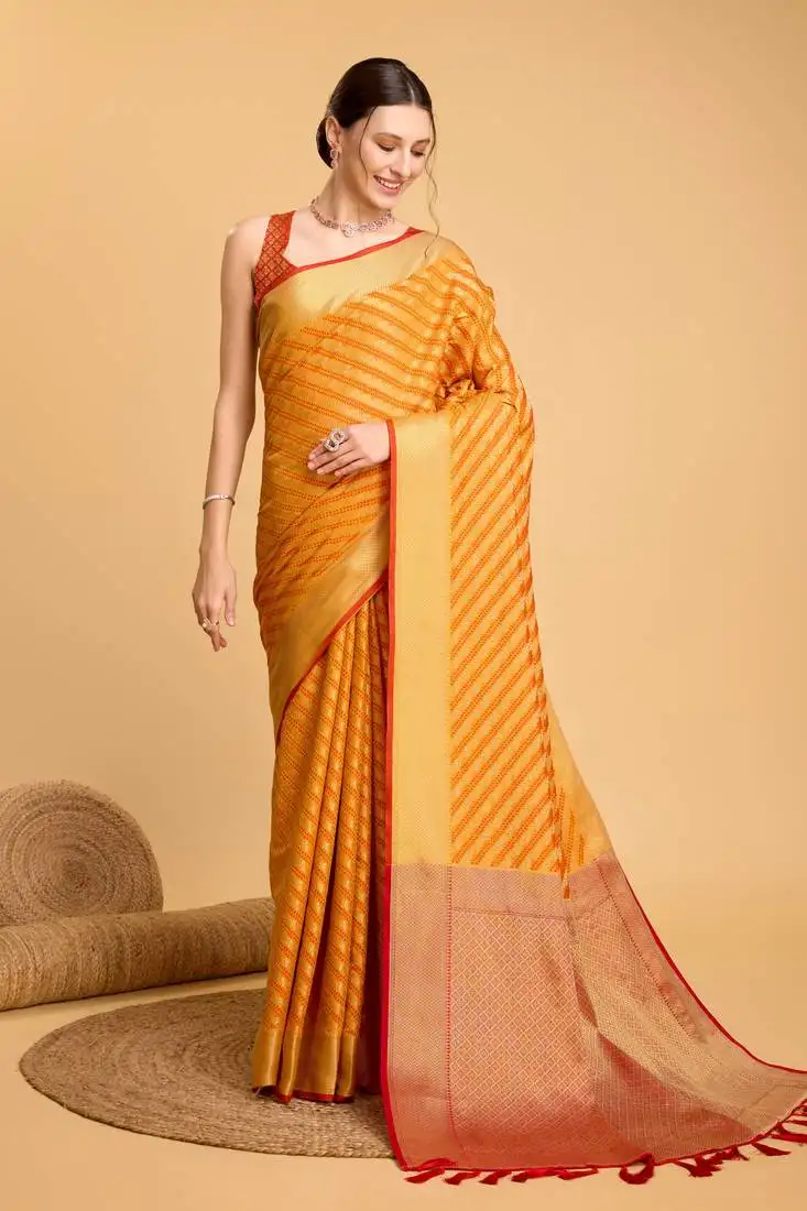 Yellow woven pyramid designer tussar silk blend festive looks saree