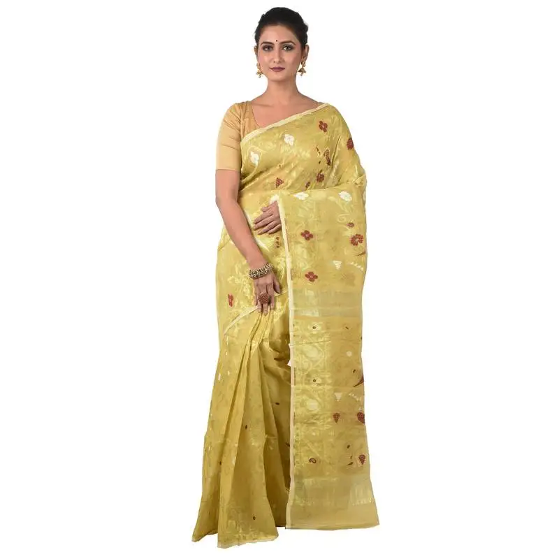 • Aishani collection woven cotton silk dhakai jamdani traditional saree (gold)