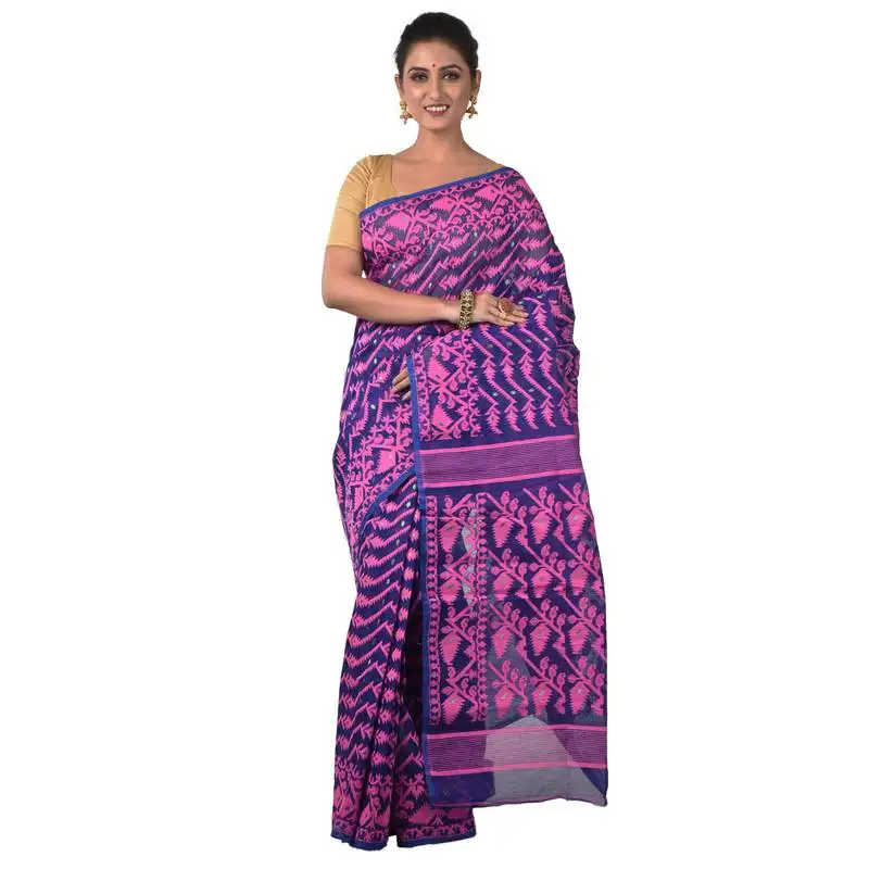 • Aishani collection woven cotton silk dhakai jamdani traditional saree (pink, blue)
