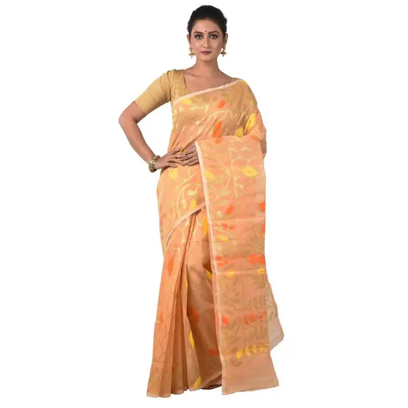 • Aishani collection woven cotton silk dhakai jamdani traditional saree (peach, orange)