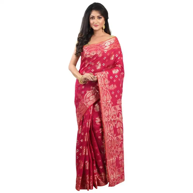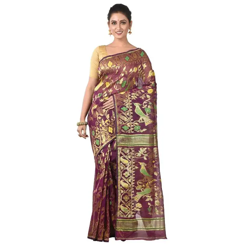 • Aishani collection woven cotton silk dhakai jamdani traditional saree (maroon)