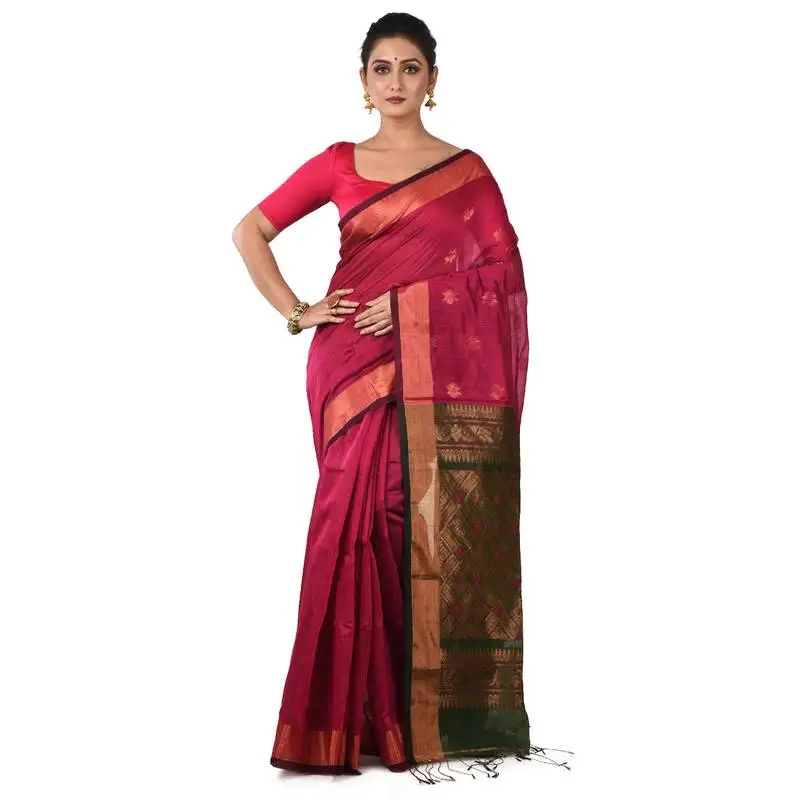 Sale!Aishani collection woven cotton silk handloom saree with bp (pink, green)