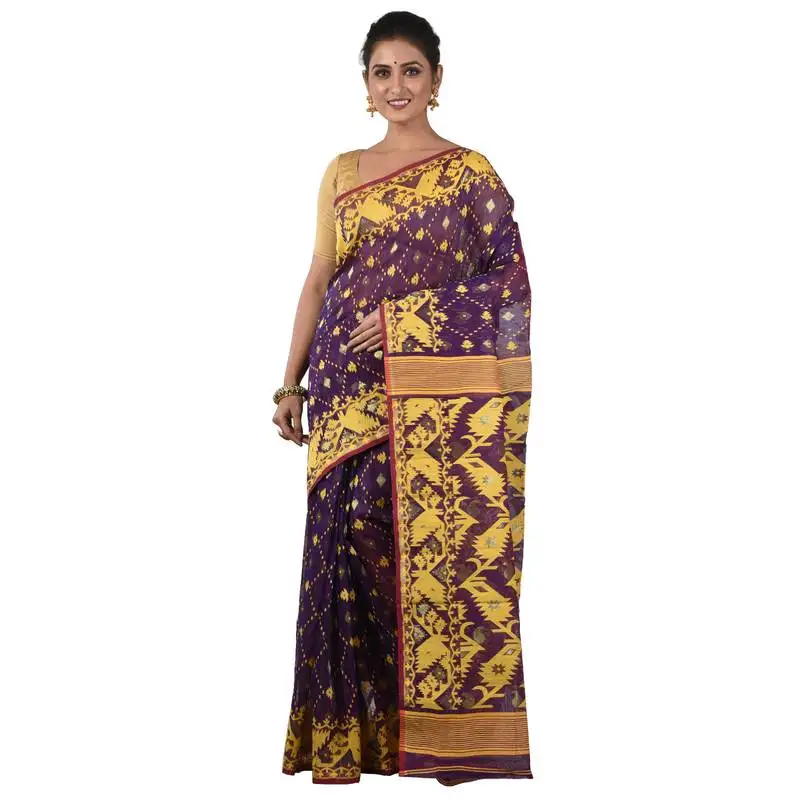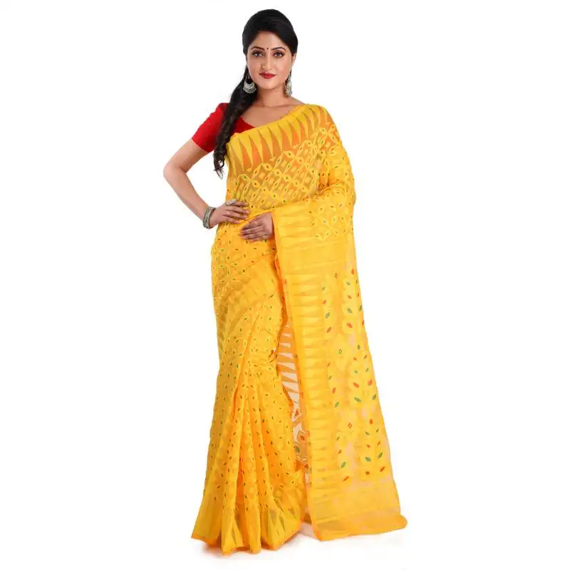 Sale!Aishani collection woven dhakai jamdani handloom saree with bp (yellow)