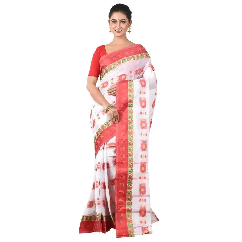 Sale!Aishani collection woven embroidery pure cotton handloom saree (red, white)