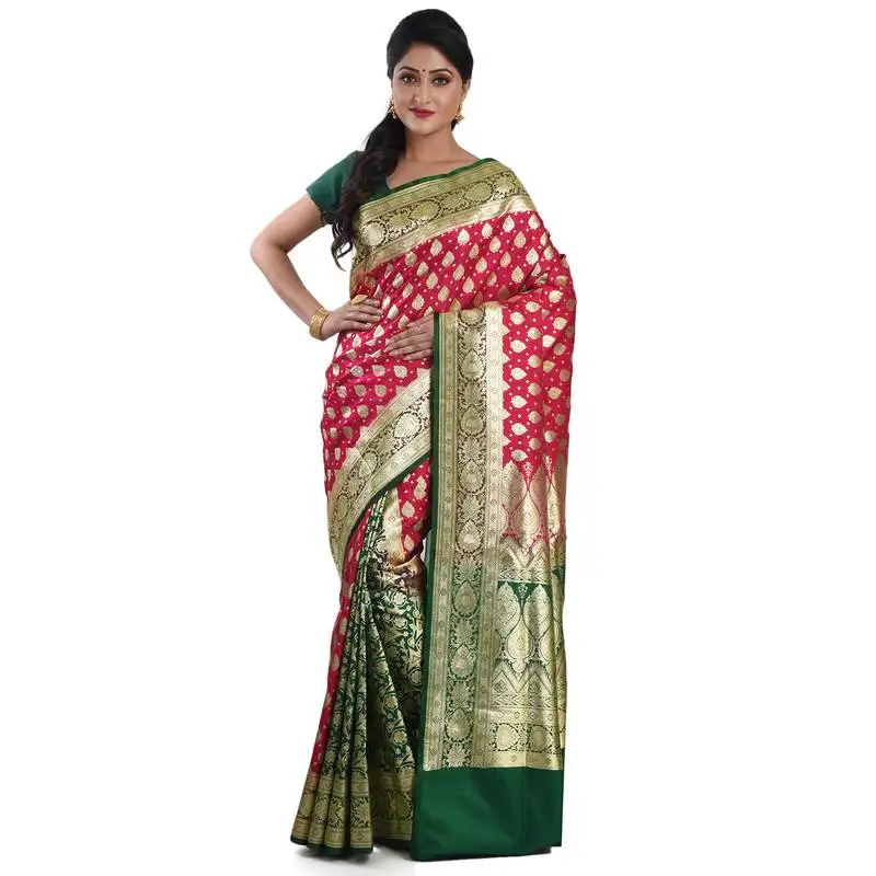 Sale!Aishani collection woven katan silk banarasi wedding saree with bp (pink,green)