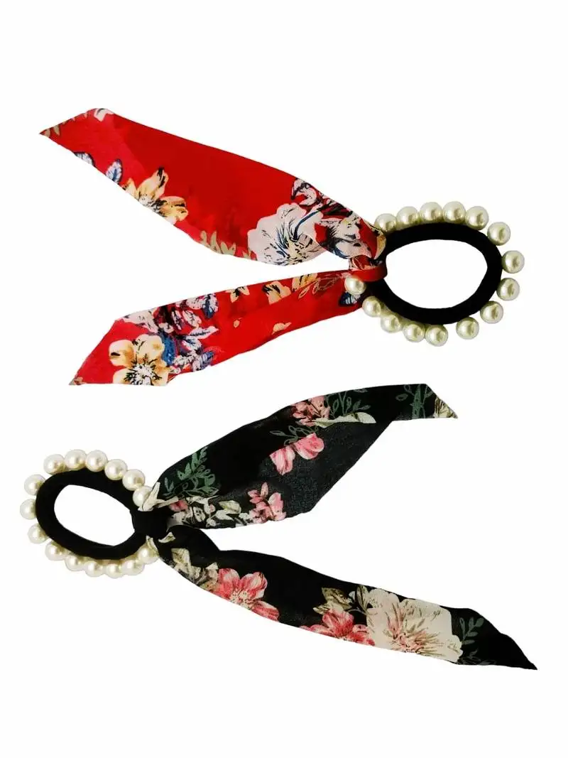 • elastics scrunchies pearl hair ties bowknot satin chiffon