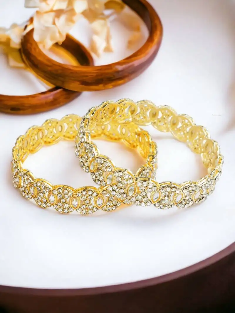 Circular gold plated kundan cz stone 2pc kada bangle