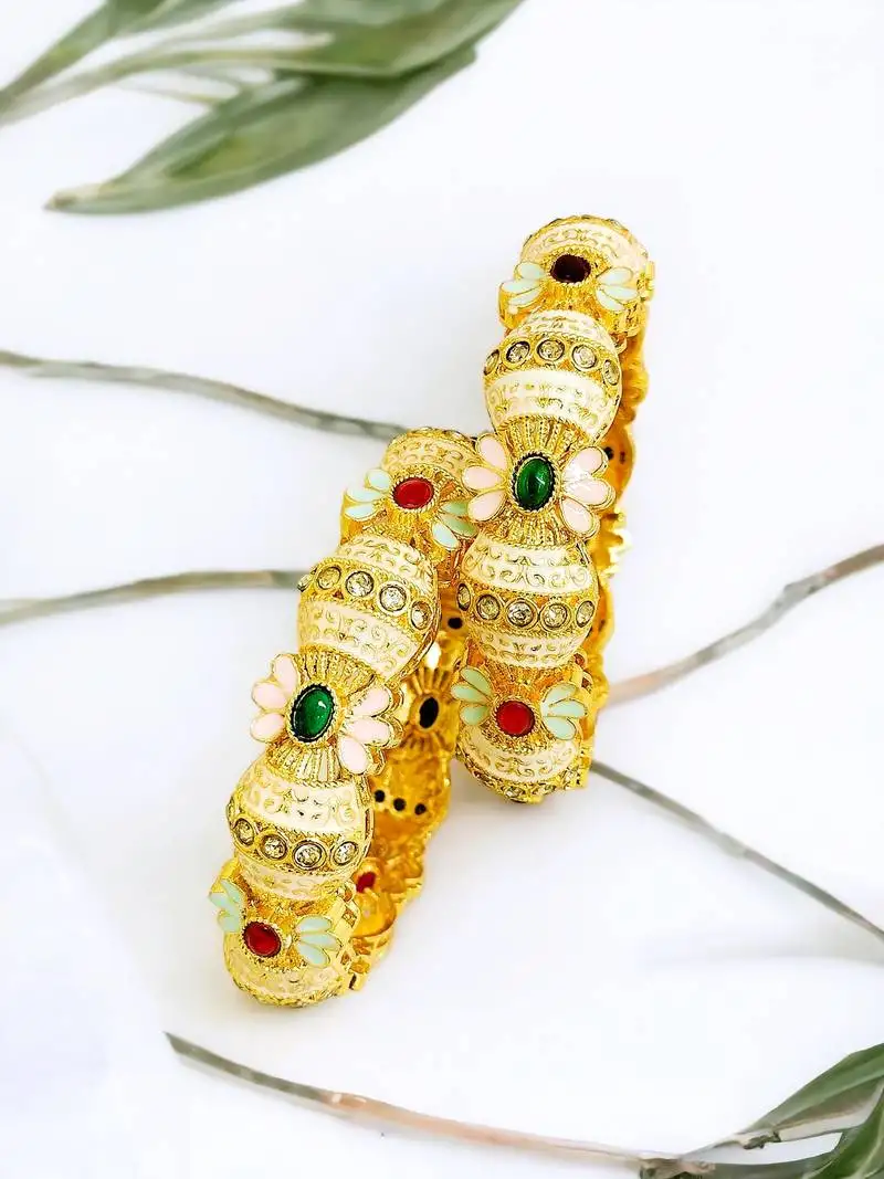 Sale!Enamel gold plated floral fusion 2pc bangle