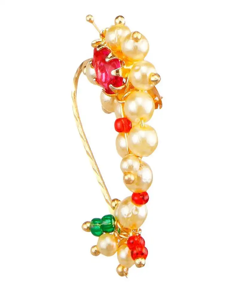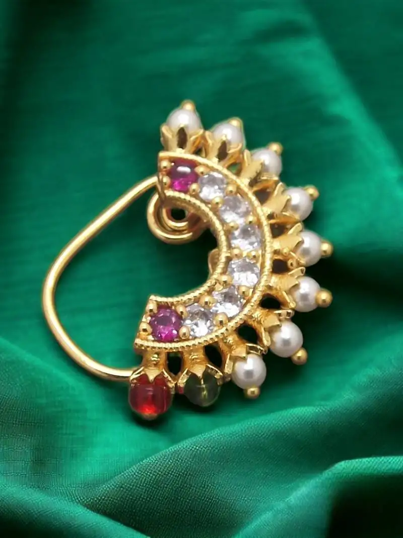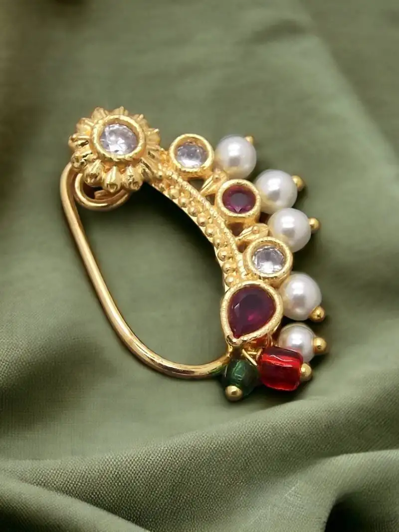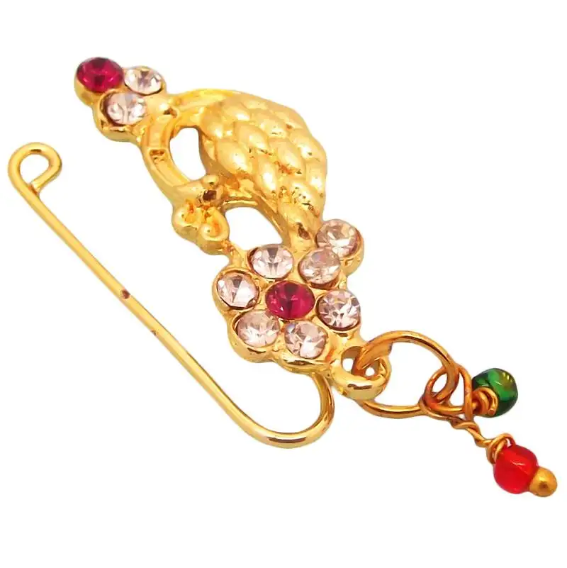 Sale!Gilded splendor: gold-plated nose ring adorned with artificial stones and beads