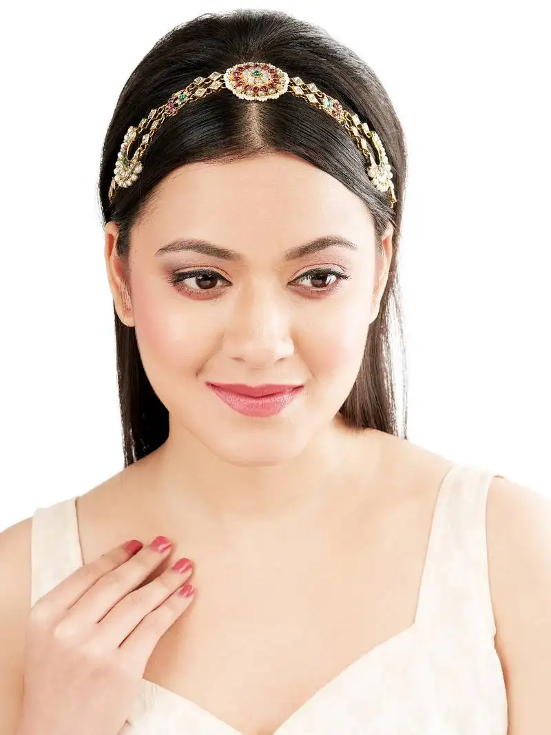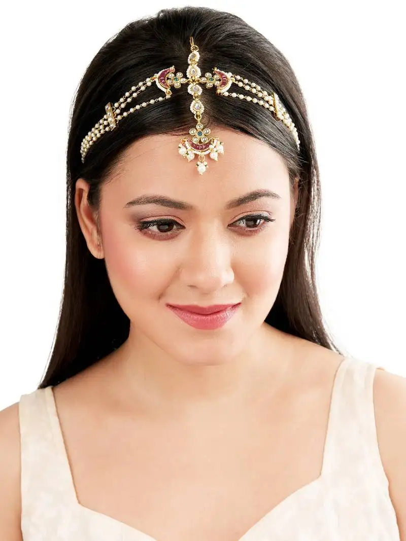 • Rajasthani kundan pearl bridal mathapatti sheeshphool