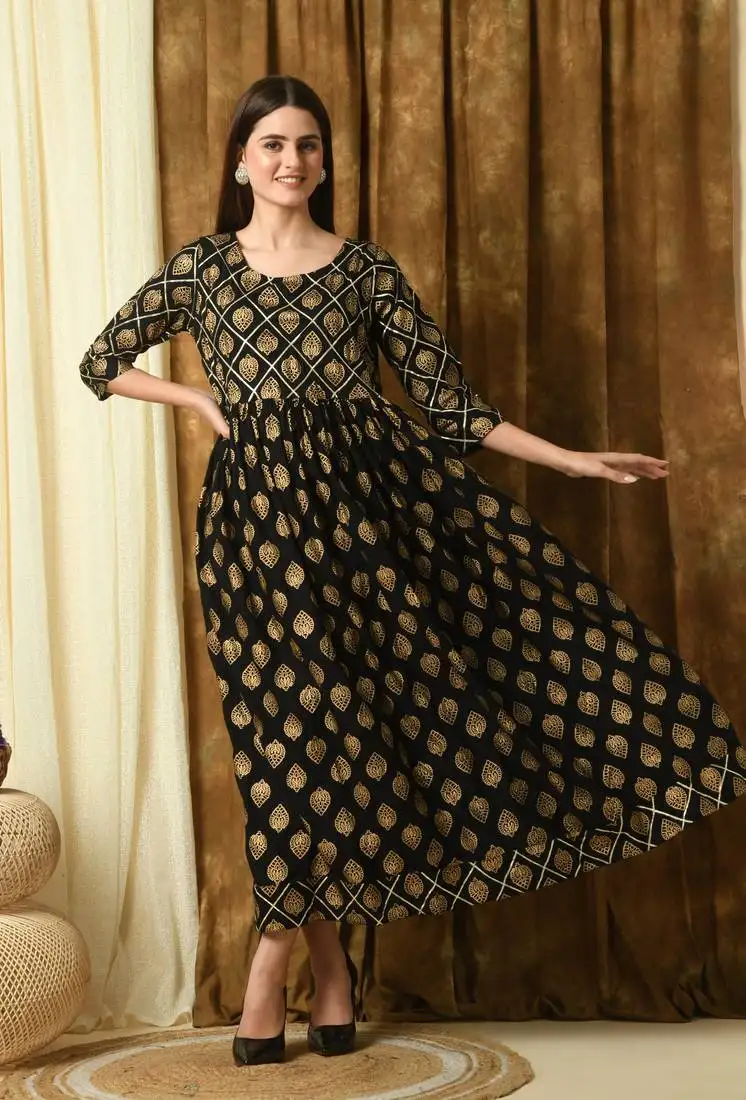 • Aayumi black colour rayon fabric solid rich looks short kurti