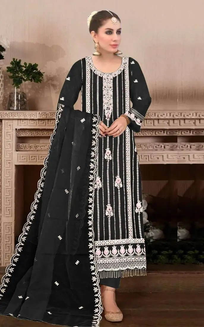 Sale!Black embroidered viscose chinon semi stitched salwar suit