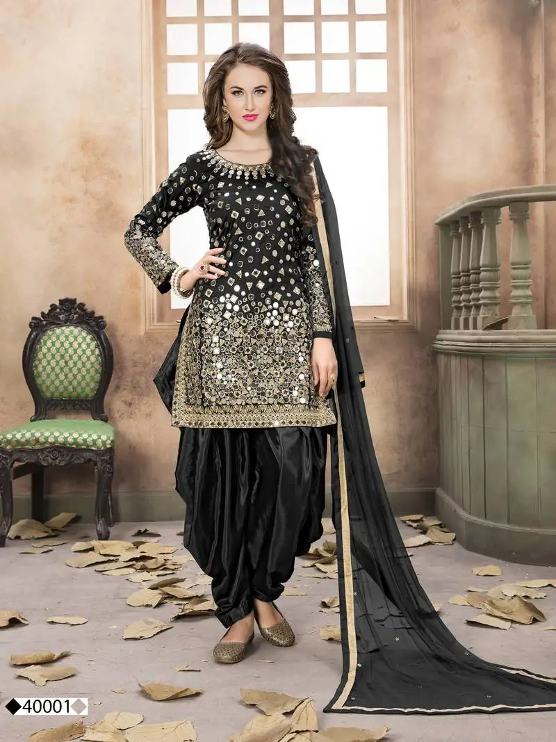 Sale!Black embroidered tapeta silk punjabi salwar suit semi stitched