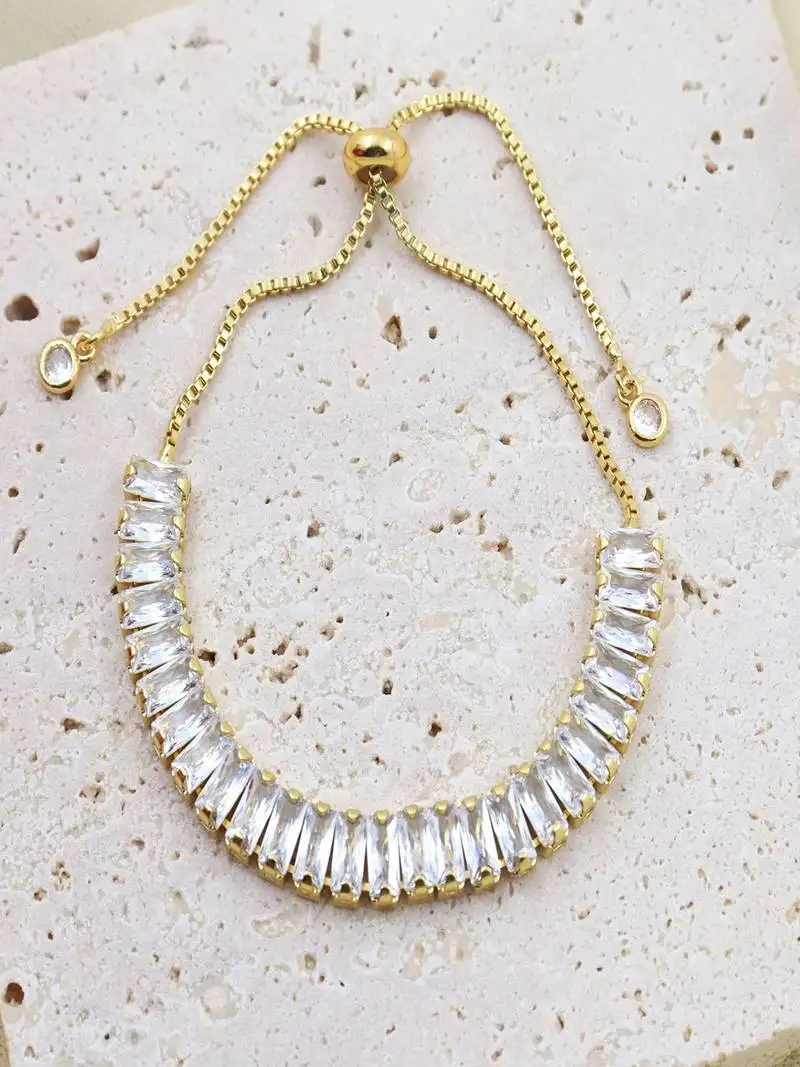 White zircon 18k plated stretch bracelet