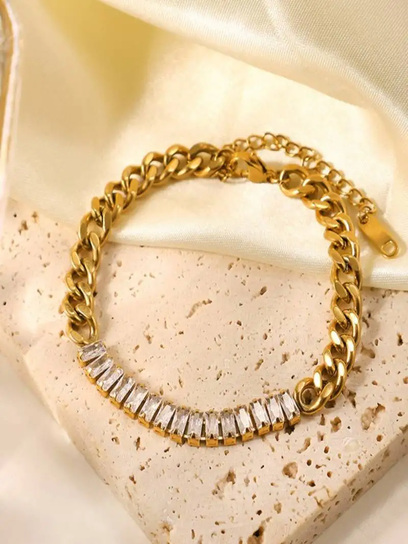 • White zircon 18k goldplated curb chain bracelet