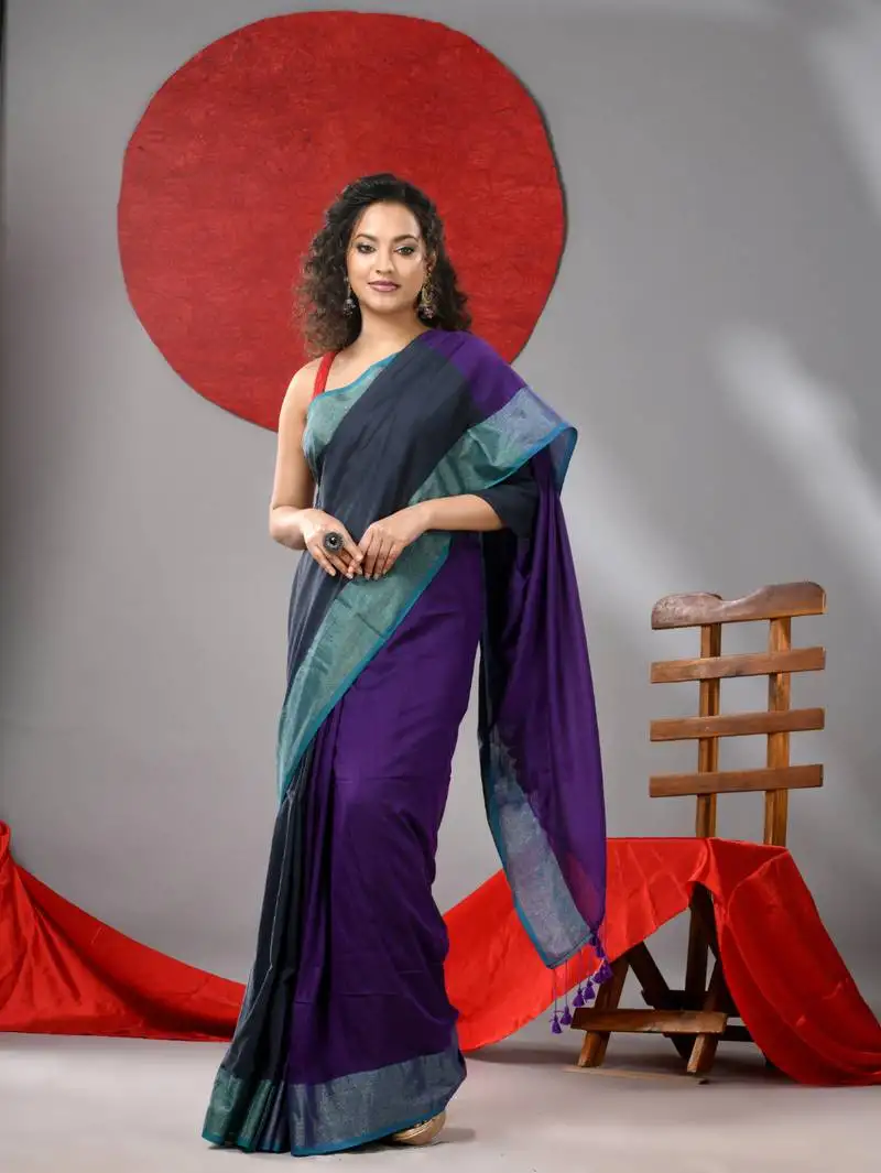 Sale!Grey and purple half & half cotton soft saree with zari border