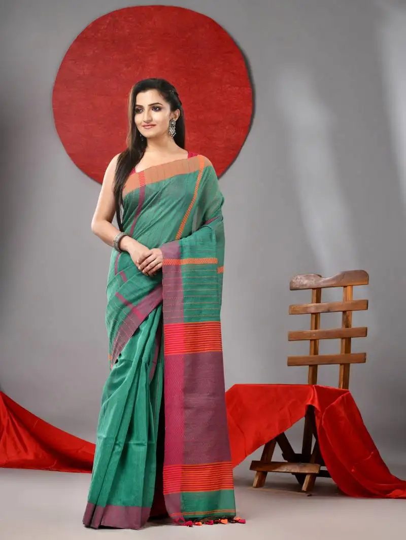 Sale!Green cotton soft saree with stripe designs