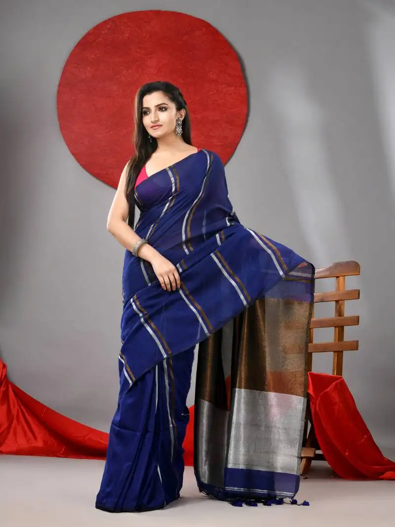 Sale!Blue cotton soft saree with stripe designs