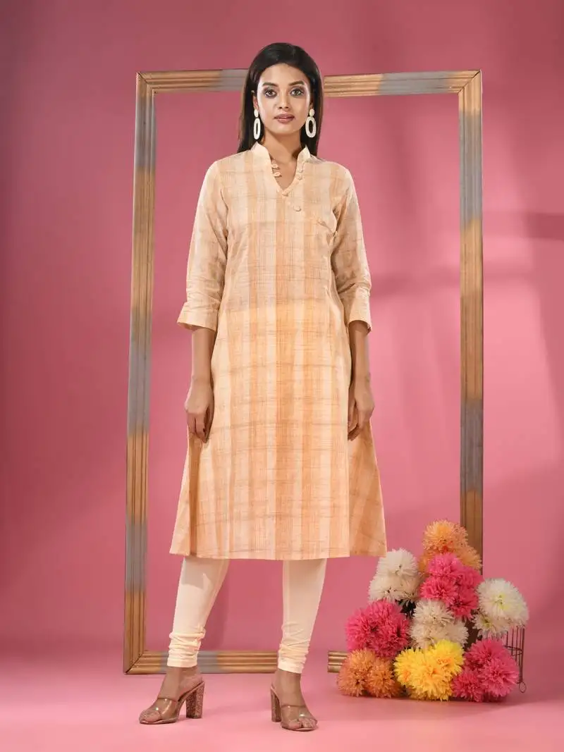 Sale!Beige cotton angrakha-style kurta