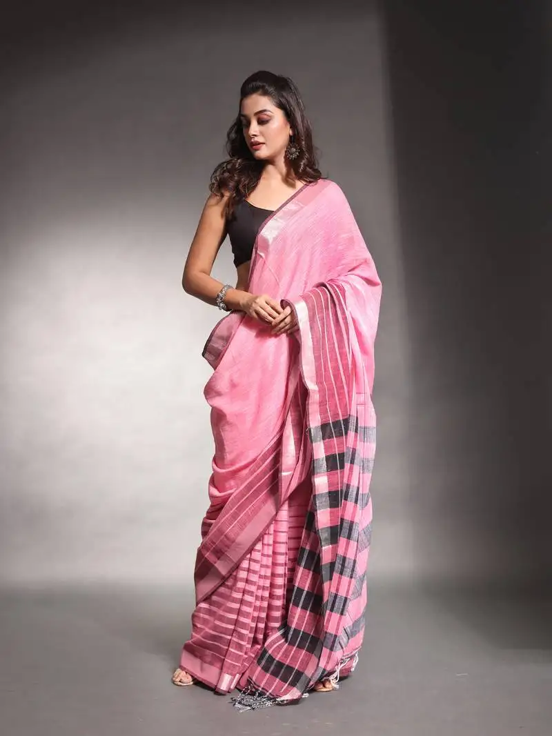 Sale!Baby pink pure cotton soft saree with stripes pattern