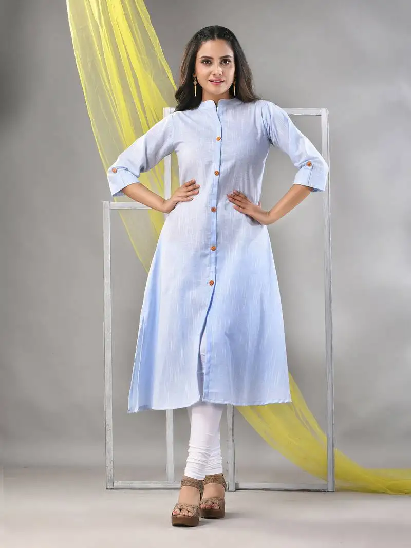 Sale!Baby blue solid cotton a-line kurta