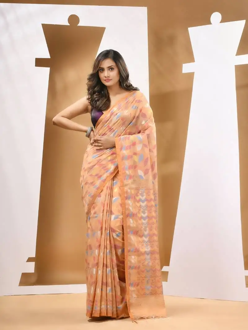 Sale!Beige cotton handspun soft saree with leaf motifs