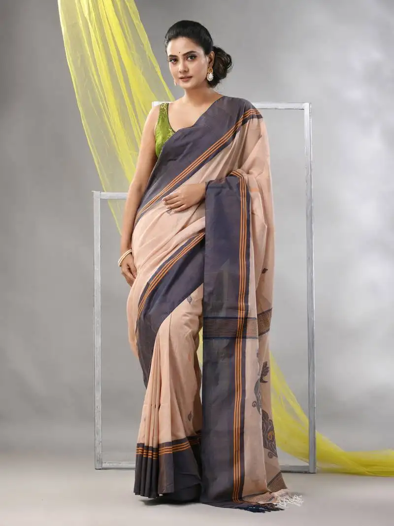 Sale!Beige cotton blend handwoven saree with paisey motifs