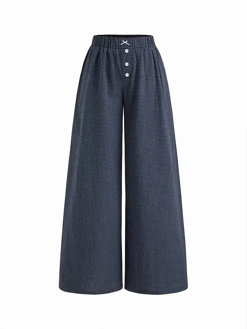 Sale!100% Cotton Mid Rise Check Bowknot Lounge Trousers