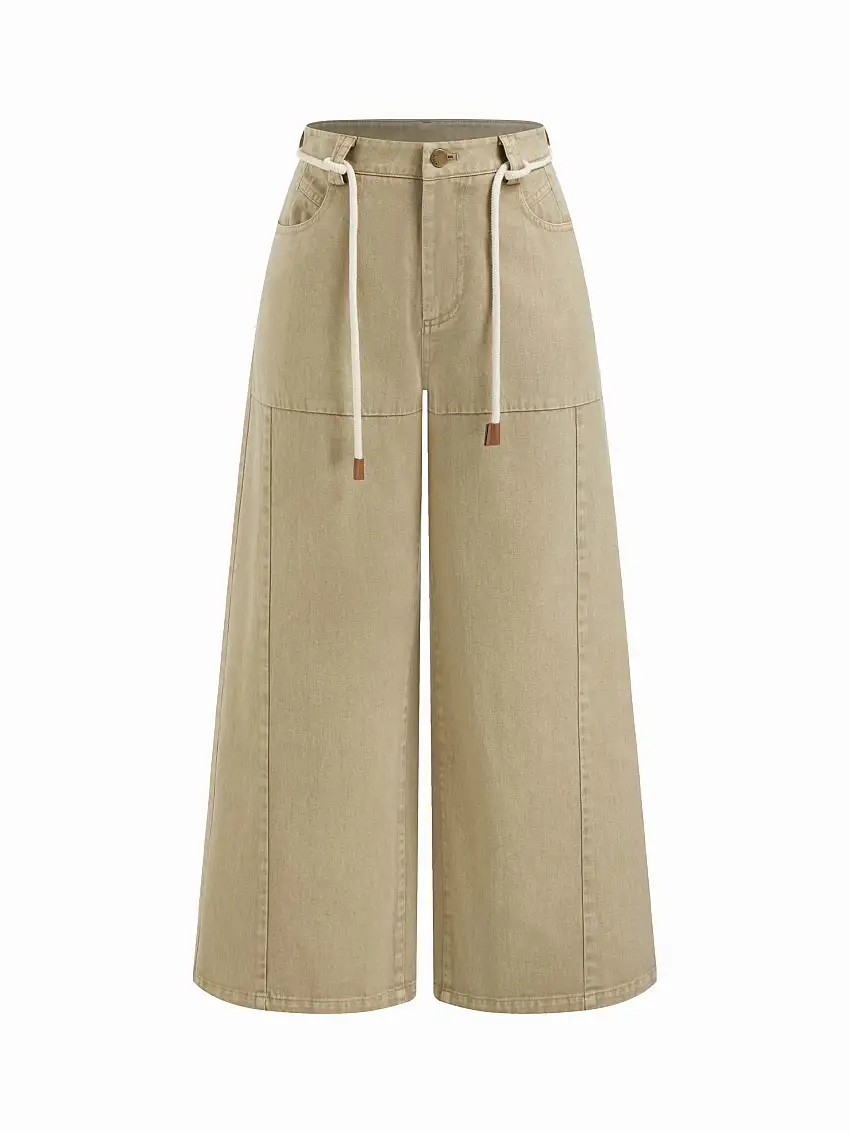 Sale!100% Cotton Mid Rise Drawstring Wide Leg Trousers