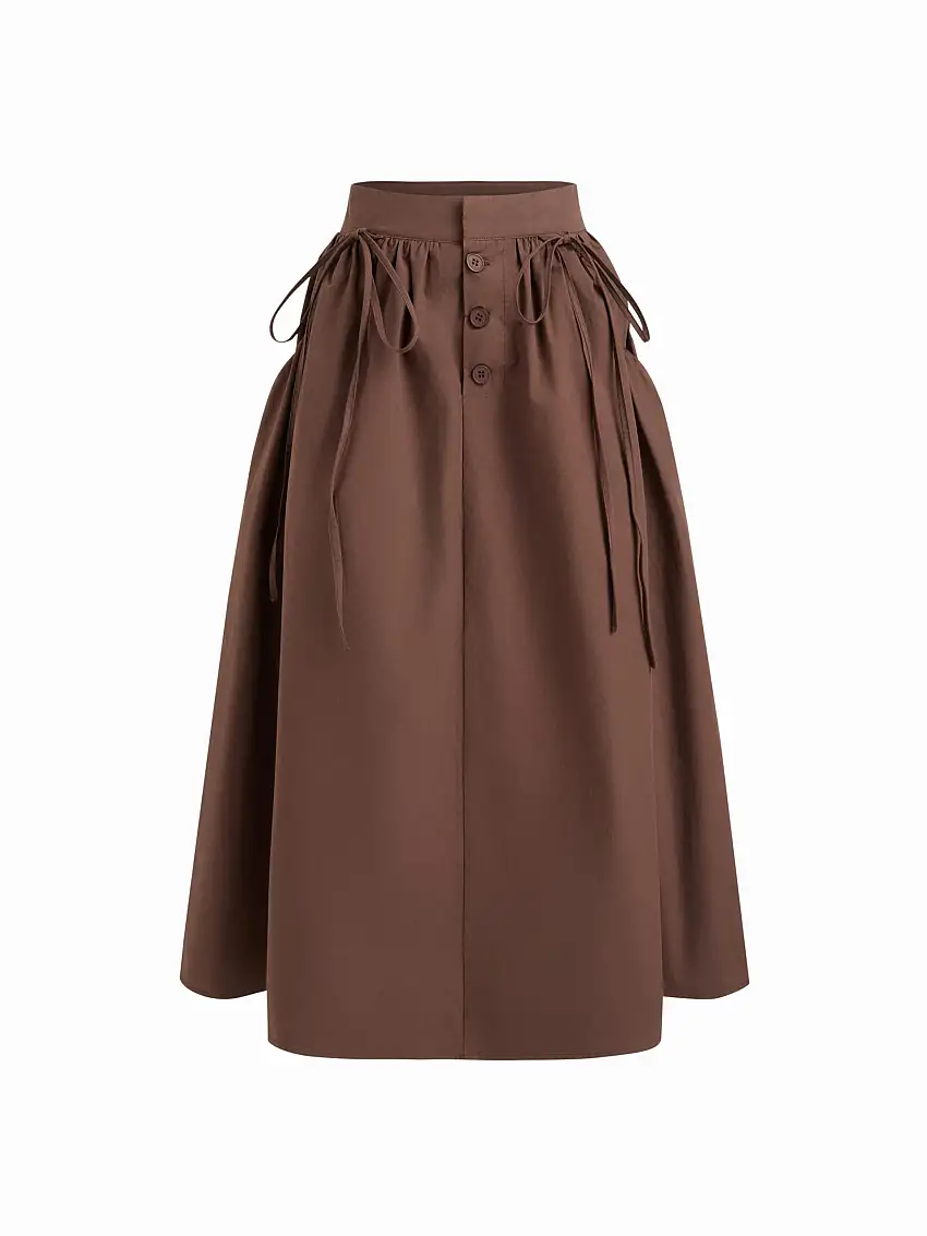 Sale!100% Cotton Mid Rise Bowknot Maxi Skirt