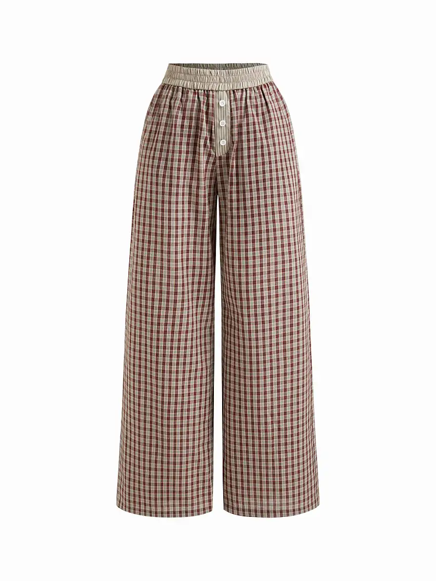 Sale!100% Cotton Mid Rise Check Straight Leg Lounge Trousers