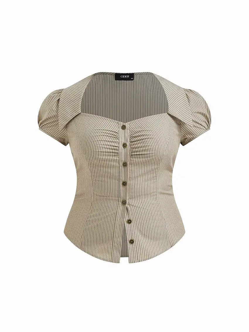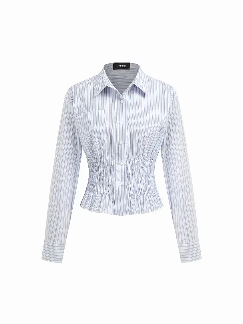 Sale!100% Cotton Collar Striped Shirred Shirt