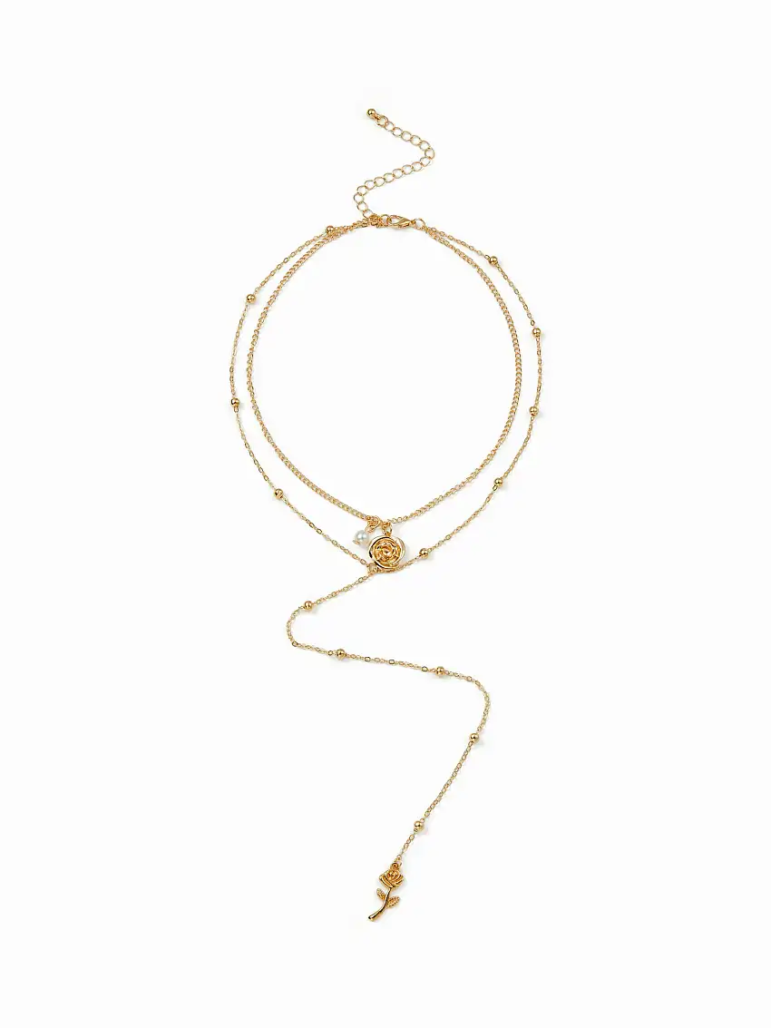 Sale!Y-SHAPED FLOWER LAYERED NECKLACE