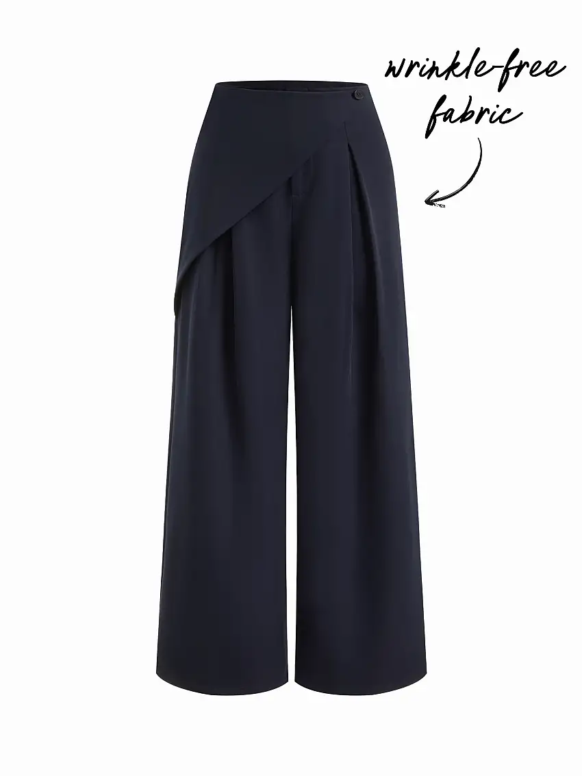 Sale!Wrinkle-free Fabric Mid Rise Wrap Wide Leg Trousers
