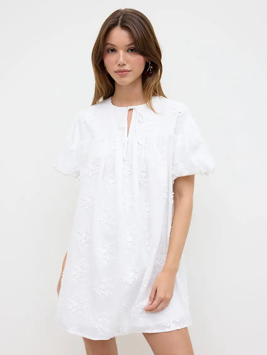 100% Cotton Floral Embroidery Dolman Sleeve Smock Mini Dress