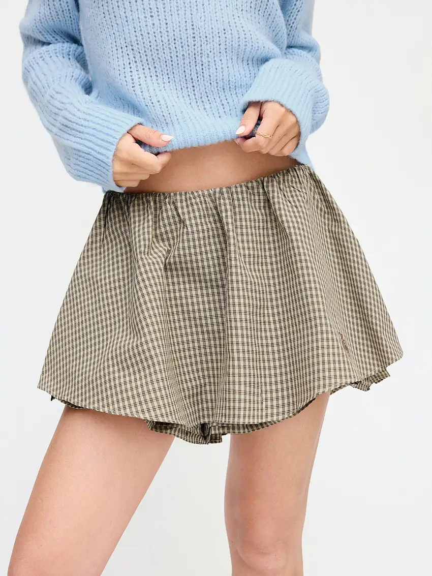 • 100% Cotton Low Rise Check Snail Embroidery Mini Skort