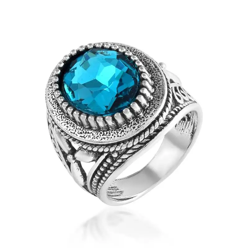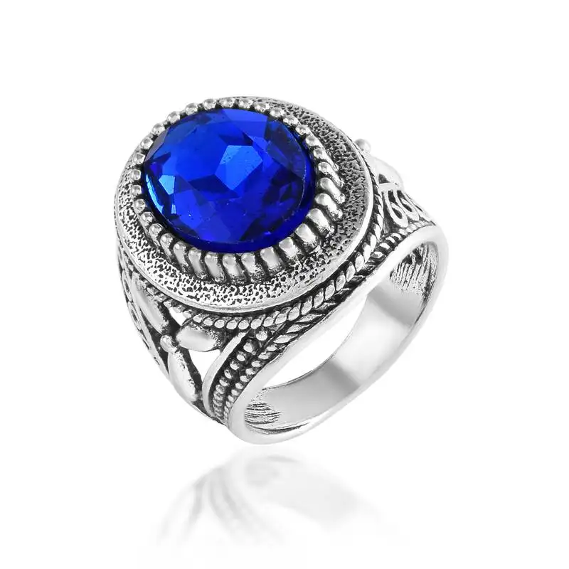 Sale!Antique silverplated faux blue sapphire neelam fashion finger ring