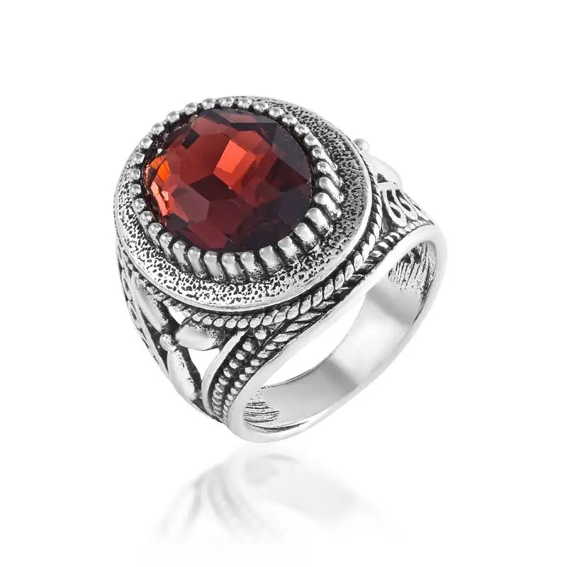 Sale!Antique silverplated hessonite gomed fashion finger ring