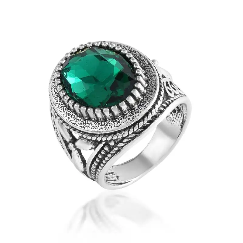 Sale!Antique silverplated faux emerald panna fashion finger ring