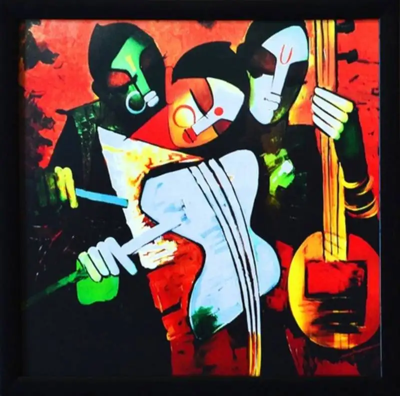 Sale!Abstract couple playing musical instruments satin matt texture framed uv art print