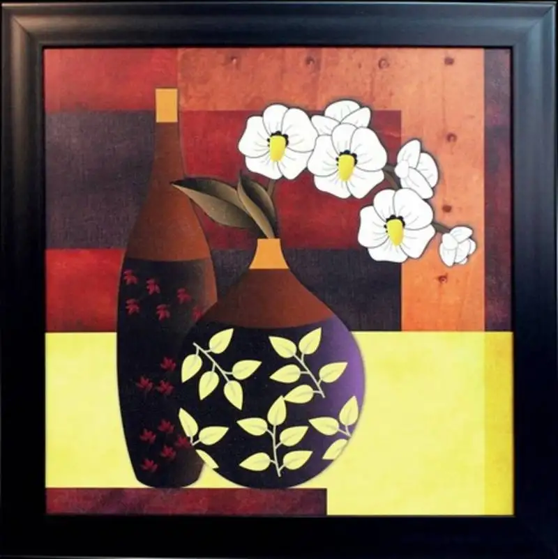 Sale!Abstract pot and flower theme satin matt texture framed uv art print