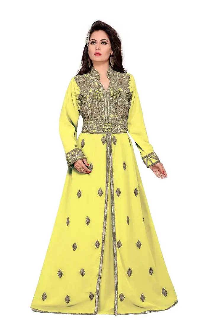 Sale!Yellow embroidered georgette islamic kaftans with hijab
