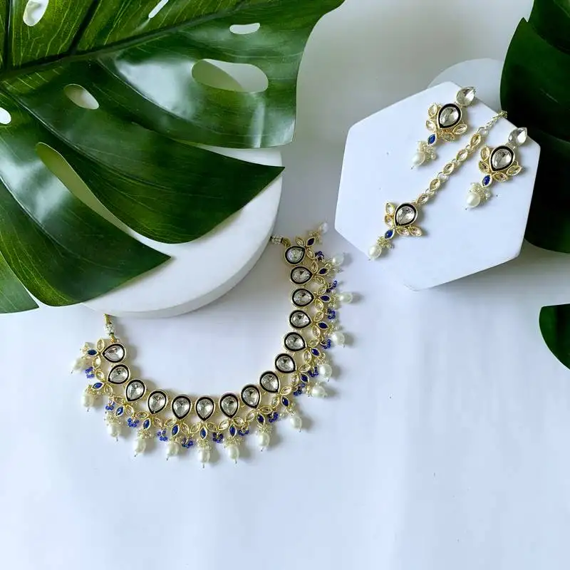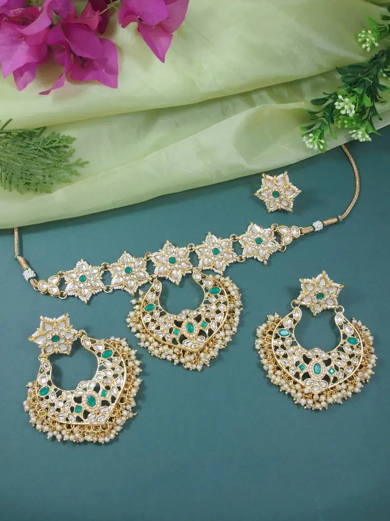 Traditional stone choker necklace jewellery with earring & maang tikka set for women & girls